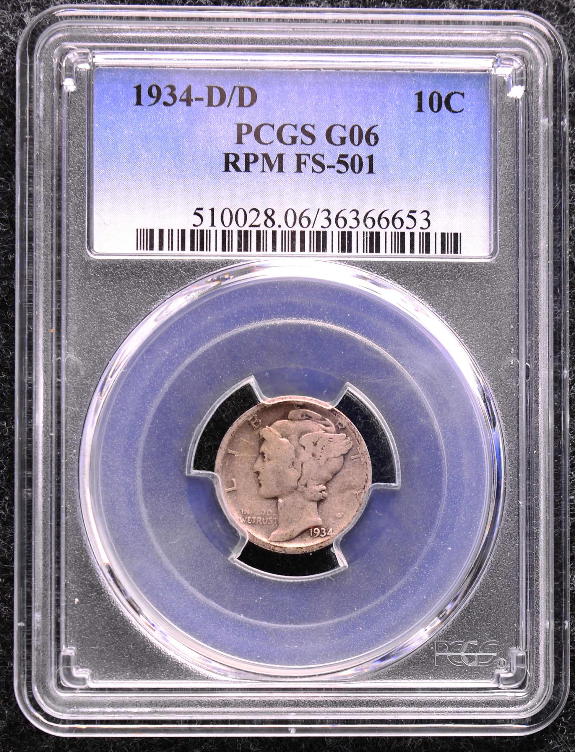 1934-D/D Mercury Dime PCGS G06 FS-501 RPM